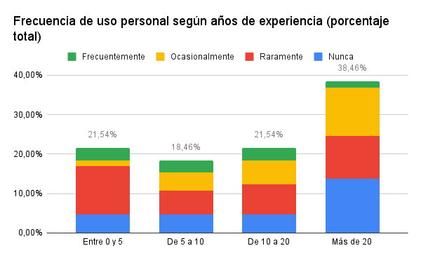 Gráfica de uso de los docentes de IA en su vida privada en función de sus años de experiencia