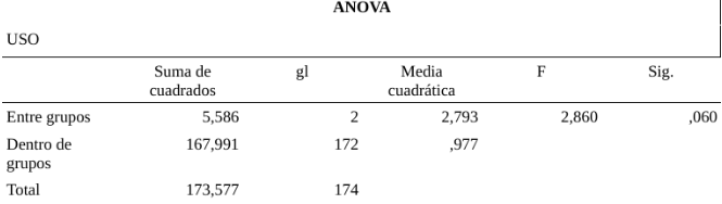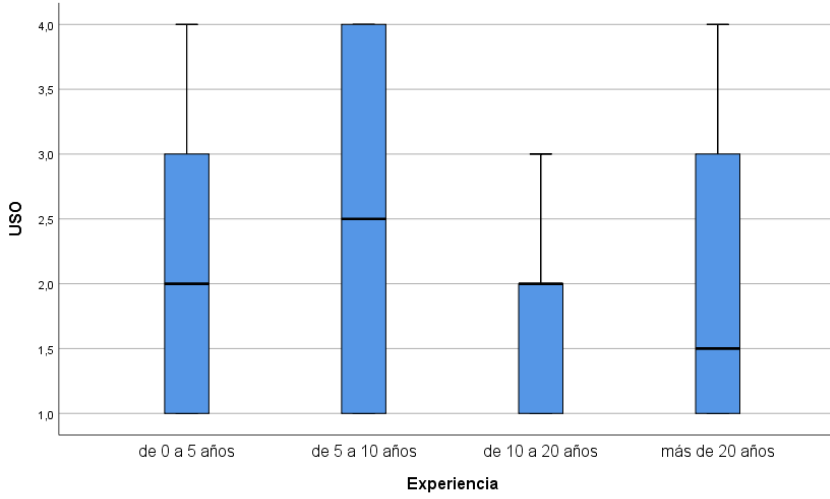 En la tabla se puede observar como la significancia entre grupos es mayor de 0,05 lo que quiere decir que las diferencias entre el uso de Chat GPT en contexto educativo según los años de experiencia no son significativas para un intervalo de confianza del 95%. Lo cual refuta nuestra segunda hipótesis.